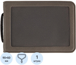 горизонтальный, 95x74 мм, (размер вкладыша 90x60 мм) без держателя, кожзам, серый