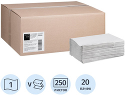 полотенца, белые, однослойные, складка ZZ(V), 20,5х22,5 см, 250 листов/уп, 20 уп/кор, для держателей арт 083-236