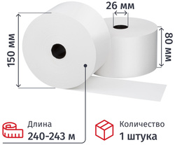 Чековая лента Комус 80 мм, 243 м, втулка 26
