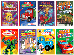 "МАКСИ-РАСКРАСКА", ассорти, 340х485 мм, 20 стр., внутренний блок 100 г/м2, 8 шт/уп