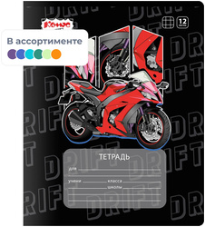 12 листов, линия, обложка картон, ассорти