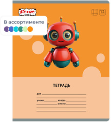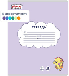 12 листов, клетка, обложка картон, ассорти