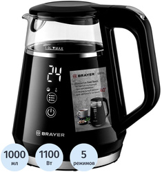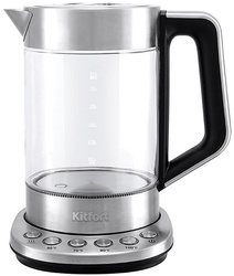 1,5 л, 2200 Вт, закрытый нагревательный элемент, терморегулятор, стекло, серебристый