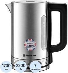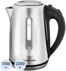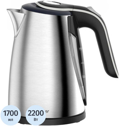 нержавеющая сталь, 1,7 л, мощность 2200 Вт, серебристый, закрытый нагр. элемент