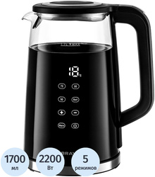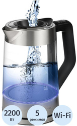 1,7 л, 2200 Вт, закрытый нагревательный элемент, LED дисплей, терморегулятор, стекло, серебро