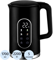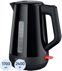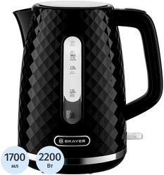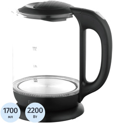 1,7 л, 2200 Вт, закрытый нагревательный элемент, автоотключение, пластик, черный