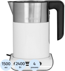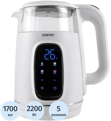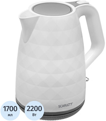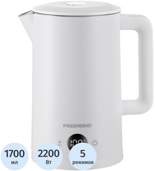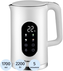 1,7 л, 2200 Вт, закрытый нагревательный элемент, терморегулятор, двойные стенки, белый