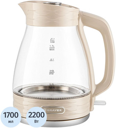 1,7 л, 2200 Вт, закрытый нагревательный элемент, термометр, пластик/металл, бежевый