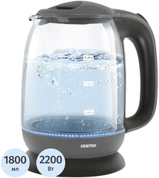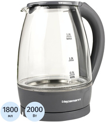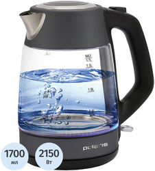 1,7 л, 2200 Вт, закрытый нагревательный элемент, терморегулятор, стекло, серый