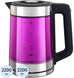 1,7 л, 2200 Вт, закрытый нагревательный элемент, терморегулятор, стекло, фиолетовый