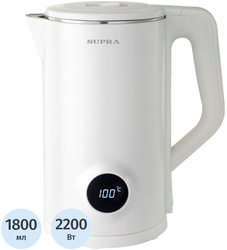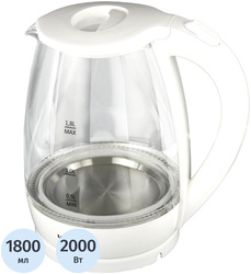 1,5 л, 1800 Вт, закрытый нагревательный элемент, терморегулятор, двойные стенки, белый