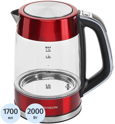 1,5 л, 1800 Вт, закрытый нагревательный элемент, терморегулятор, двойные стенки, красный