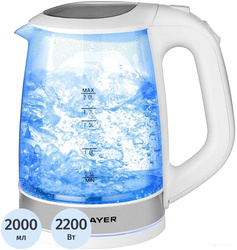 1,7 л, 2200 Вт, закрытый нагревательный элемент, терморегулятор, стекло, белый/фиолетовый