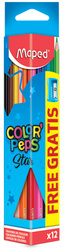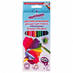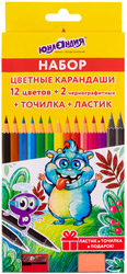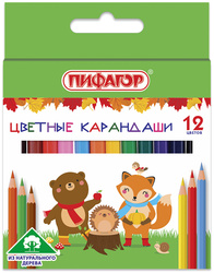 12 цветов + 2 чернографитных карандаша +ластик + точилка, шестигранные, натуральное дерево