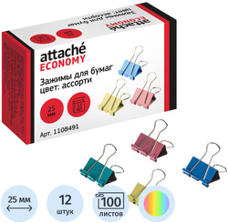 Зажимы для бумаг цветные ATTACHE Economy, 25мм, 12шт/уп