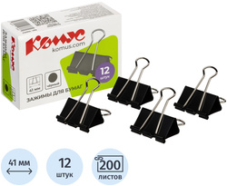 Зажимы для бумаг КОМУС, 41мм, 12шт/уп