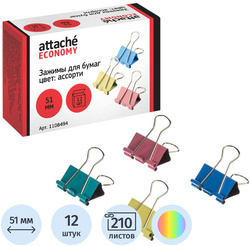 Зажимы для бумаг цветные ATTACHE Economy, 51мм, 12шт/уп