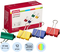 Зажимы для бумаг цветные ATTACHE, 41мм, 12шт/уп