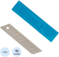 Сегментированная конструкция с 8 рабочими частями (7 отделяемых сегментов) позволяет легко обновлять режущую кромку по мере необходимости. Лезвия имеют прямоугольную форму с углом наклона 45°, толщиной 0.7 мм, шириной 22 мм и длиной 100 мм. В комплект входит 10 лезвий, упакованных в пластиковый контейнер, удобный для безопасного хранения и переноски.