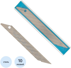 Сегментированная конструкция с 8 рабочими участками и углом наклона 30° позволяет легко обновлять режущую часть по мере износа. Лезвия имеют прямоугольную форму, толщину 0.4 мм, ширину 9 мм и длину 73 мм, обеспечивая точный и контролируемый рез. В комплект входит 10 лезвий, упакованных в пластиковый контейнер, удобный для безопасного хранения и транспортировки.