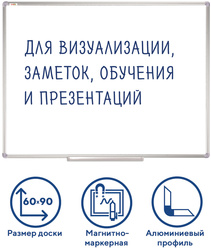 Доска магнитно-маркерная STAFF Profit, 60х90 см, лаковая поверхность, алюминиевая рамка, полочка