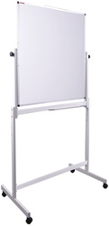 Лаковое покрытие предназначено для письма специальными маркерами для белой доски, а металлическая поверхность позволяет размещать информацию при помощи магнитов. Вращается в горизонтальной плоскости на 360°. Перемещается на колесиках. Алюминиевая рама придает доске необходимую прочность. Подставка для канцелярских принадлежностей позволяет всегда держать под рукой магниты, маркеры, стиратели и другие необходимые предметы. Элементы крепления входят в комплект. Защитная пленка предупреждает появление царапин, потертостей и сколов на рабочей поверхности доски при транспортировке и хранении продукции (перед началом работы необходимо удалить защитную плёнку). Размер: 90х60 см.
