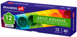 Гуашь BRAUBERG ART CLASSIC, 12 цветов в баночках по 40 мл