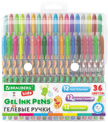 Набор гелевых ручек BRAUBERG KIDS «CUTE ANIMALS», 36 цветов, линия 0,7 мм