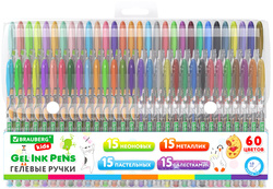 Набор гелевых ручек BRAUBERG KIDS «CUTE ANIMALS», 60 цветов, линия 0,7 мм