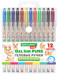 Набор гелевых ручек BRAUBERG KIDS «CUTE ANIMALS», 12 цветов, линия 0,7 мм