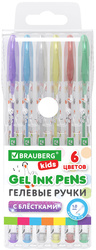 Набор гелевых ручек BRAUBERG KIDS «CUTE ANIMALS», 6 цветов, линия 0,7 мм, блестки