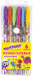 Набор гелевых ручек ЮНЛАНДИЯ, 6 цветов, линия 0,5 мм, неон