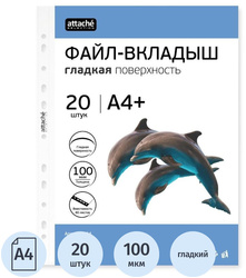 Файловые карманы ATTACHE Selection, А4+, 100 мкм, гладкие, 20 шт/уп