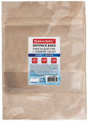 Пакеты фасовочные дой-пак с замком ZIP LOCK крафт BRAUBERG, с окном 60 мм, 200х300 + 50 мм, 150 мкм, 100 шт/уп