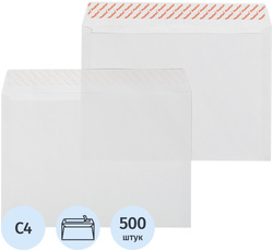 Конверты с отрывной полосой КОМУС, C4 (229×324 мм), белые, 100г/м², 500 шт/уп