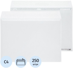 Конверты с отрывной полосой КОМУС, C4 (229×324 мм), белые, 90г/м², 250 шт/уп