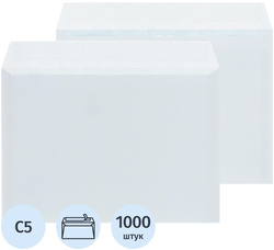 Конверты с отрывной полосой КОМУС, C5 (162×229 мм), белые, 80г/м², 1000 шт/уп