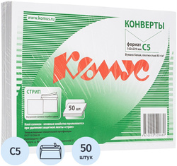 Конверты с отрывной полосой КОМУС, C5 (162×229 мм), белые, 80г/м², 50 шт/уп