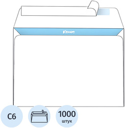 Конверты с отрывной полосой КОМУС, C6 (114х162 мм), белые, 80г/м², 1000 шт/уп