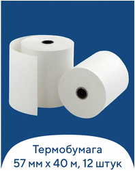 Чековая лента из термобумаги BRAUBERG, 57 мм, диаметр 51 мм, длина 40 м, втулка 12 мм, 12 шт/уп