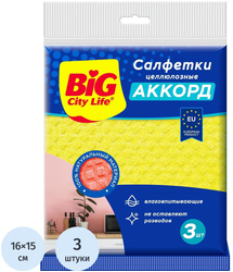 Салфетка губчатая BIG City Аккорд, 16x15 см, 230 г/м2, цвет в ассортименте, 3 шт/уп
