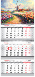 Календарь квартальный BG на 2026 год, Мельница, 3-блочный, 3 спирали, с бегунком