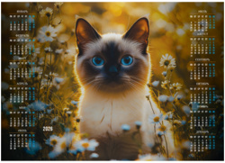 Календарь настенный листовой BG А3 на 2026 год, Сиамский кот, 300х420 мм, 20шт/уп