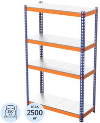 Стеллаж Профи-Т — это усиленный быстро сборный стеллаж на зацепных креплениях для хранения тяжёлых штучных и коробочных грузов, инструментов, запчастей, крупногабаритных товаров, техники. Подойдет для установки на складах, производственных предприятиях, в мастерских, СТО, гаражах. У стеллажа Профи-Т стойки перфорированы с шагом 45 мм, что позволяет размещать ярусы на любом расстоянии друг от друга, а благодаря безболтовому креплению это можно сделать очень быстро. Стеллажи Профи-Т окрашиваются порошково-полимерной краской (стойки — синего, стяжки — оранжевого). Максимальная нагрузка на стеллаж 2500 кг. Максимальная распределенная нагрузка на полку 350 кг. Количество полок — 4 штуки. Нет возможности увеличения высоты корпуса. Подпятники присутствуют, помогает защитить пол от механических повреждений при установке или передвижении стеллажа.