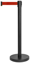 Стойка ограждения с вытяжной лентой предназначена для разделения потоков людей в общественных местах. Круглое пескополимерное основание, плоский металлический хромированный колпак, стойка сталь окрашенная, лента полиэстер, ширина 47 мм, цвет красный.