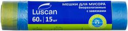 Пакеты для мусора ПНД LUSCAN, 60 л, 60х70 см, 12 мкм, синие, 15 шт/рул, с завязками