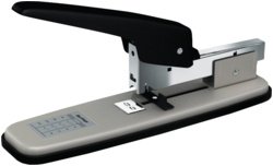 Корпус - металл. Сшивает до 100 листов. Используются скобы номер №23/6, 23/8, 23/10, 23/13. Вмещает 100 скоб. Глубина захвата 65 мм.