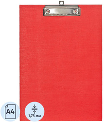 Планшет формата А4 (226×316 мм) изготовлен из плотного картона, сверху покрыт ПВХ красного цвета. Позволяет комфортно работать с документами на весу. Металлический прижим надежно удерживает листы и файлы.