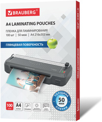 Пленка для ламинирования BRAUBERG, А4, 50 мкм, 100 шт/уп