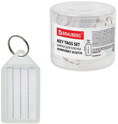 Бирки для ключей BRAUBERG, 55 мм, 20 шт/уп, прозрачные